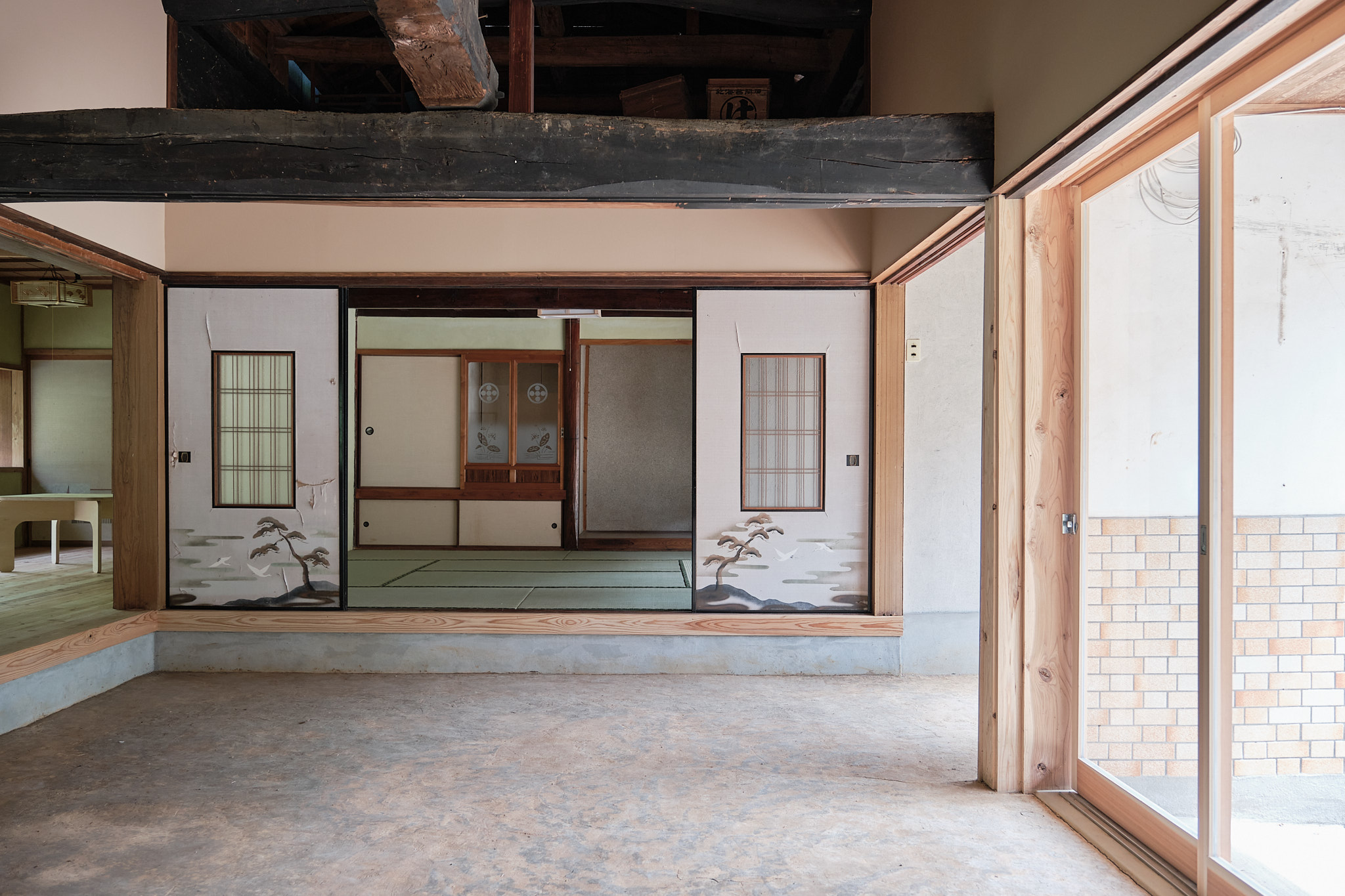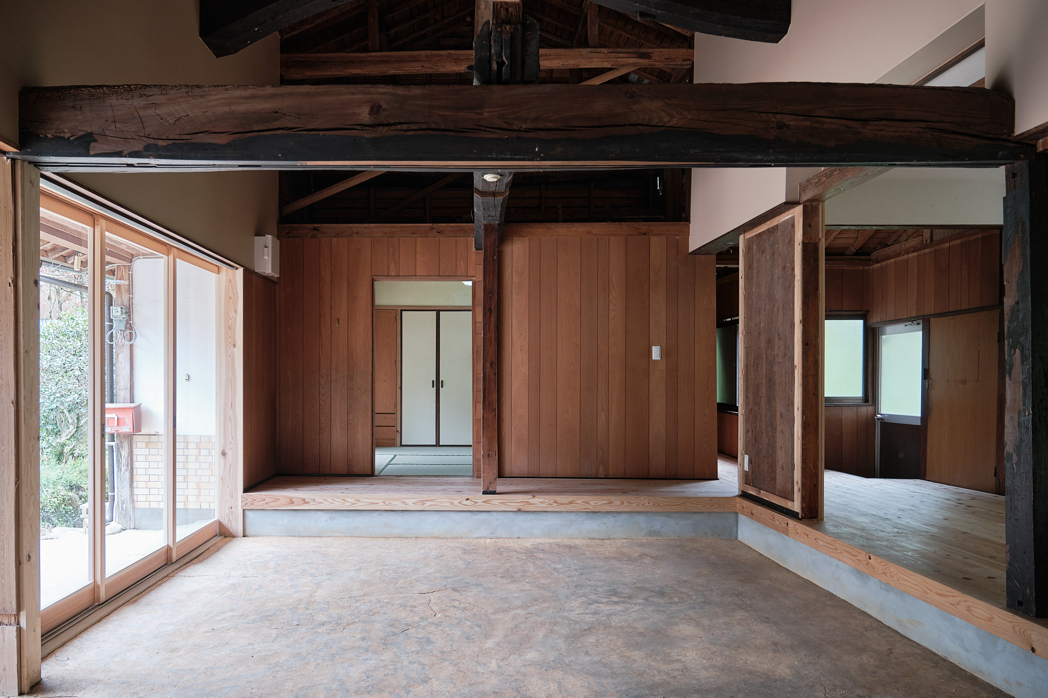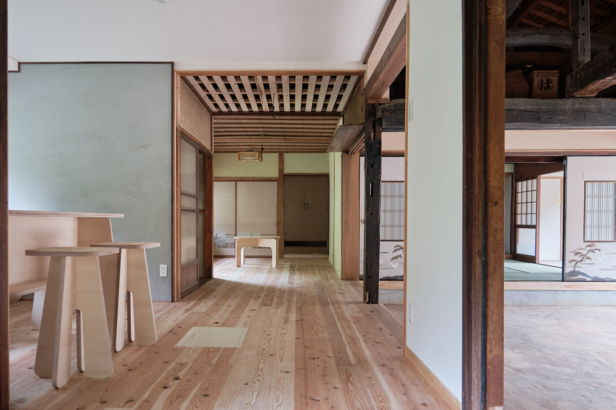 八女市・八女観光協会が上陽町の活性化を考えており、その中で空き家があるから、それをリノベーションして宿泊できるようにして欲しいという依頼があった。リズムデザインの井手さんに手伝ってもらった。予算が限られていたので、屋根の最低限の雨漏りなどを直しほぼお金は消えて、床をやりなおし、土間をみんなでワークショップでつくった。そして、什器はバレちゃんが設計してくれて、CNCで抜いて調整して組んだ。簡易的な改装だが、リズムデザインの井手さんの監修によって十分すぎる気持ちが良い空間となった。横が星野川に入る川で、とても気持ちが良い。