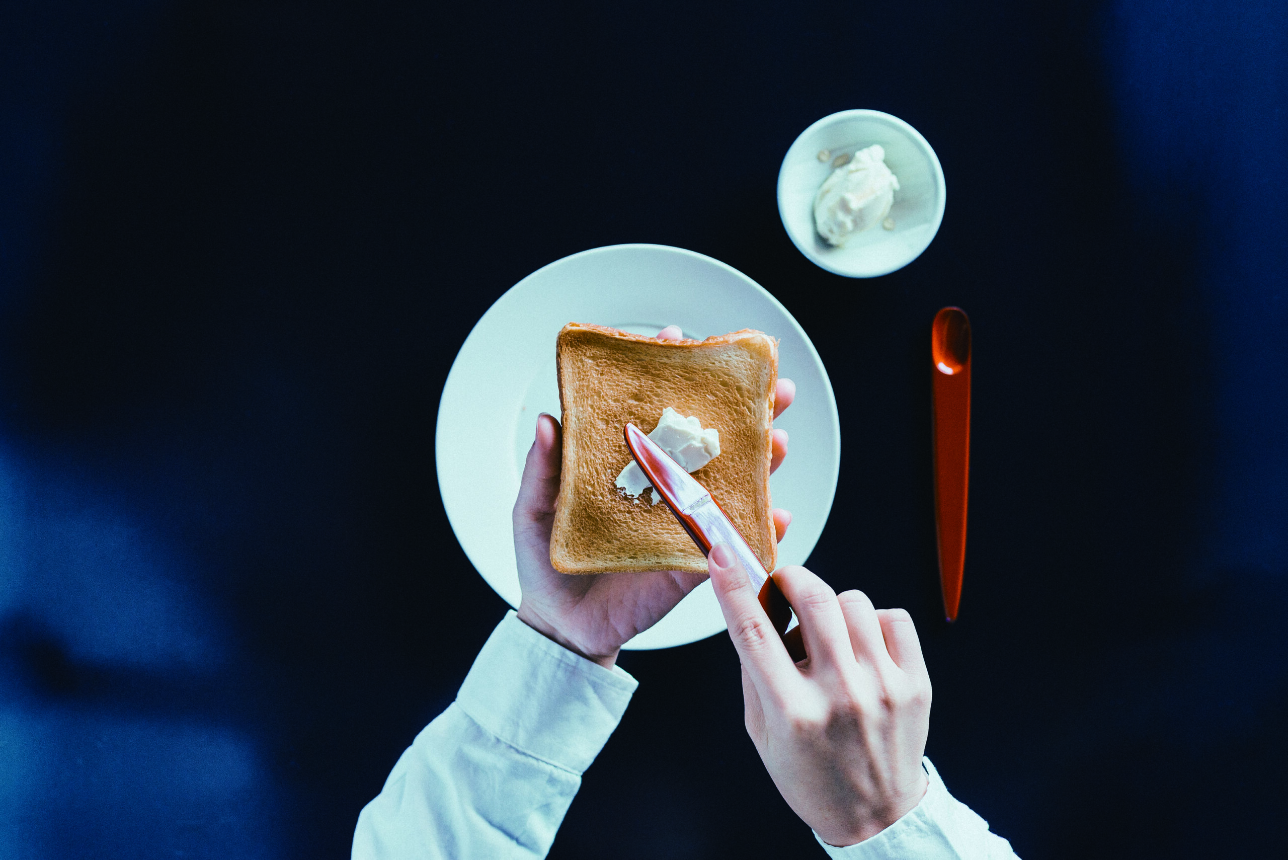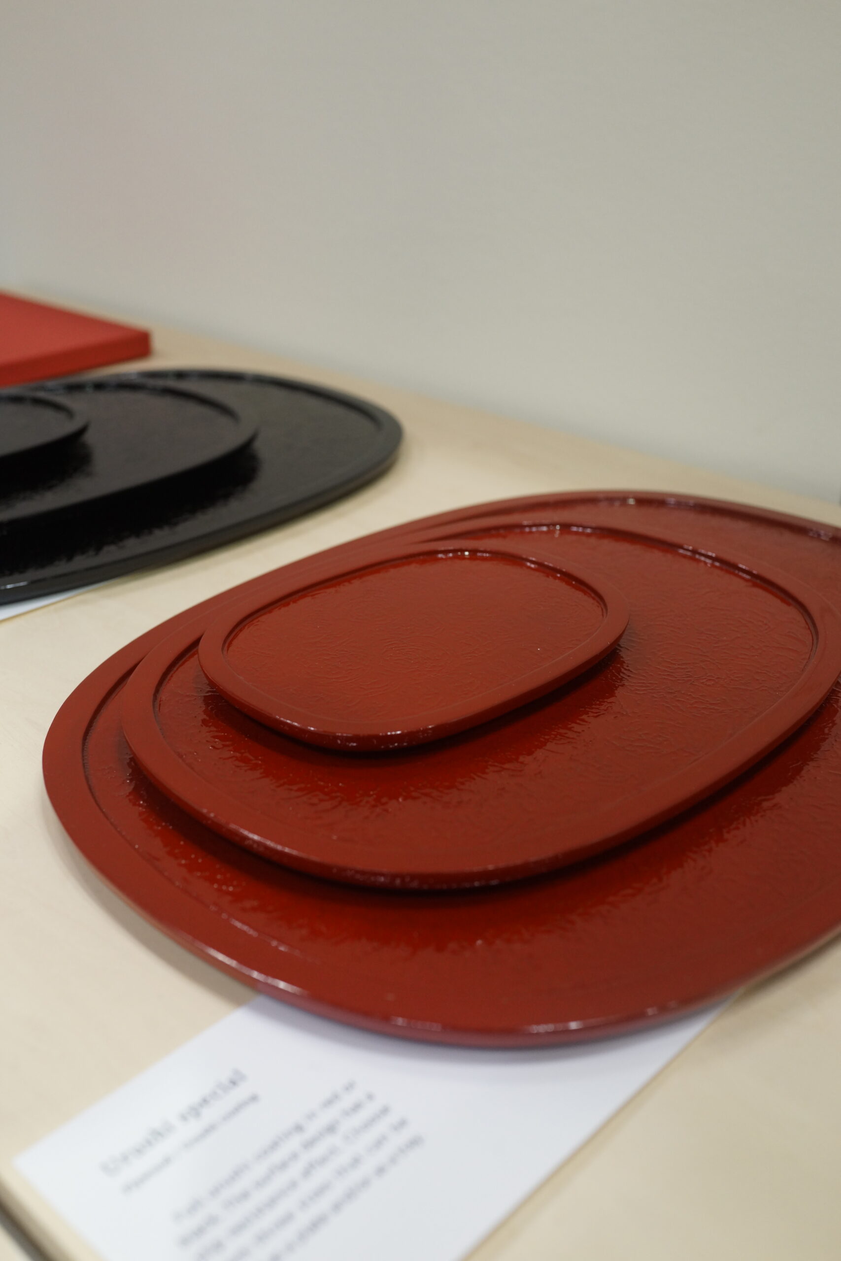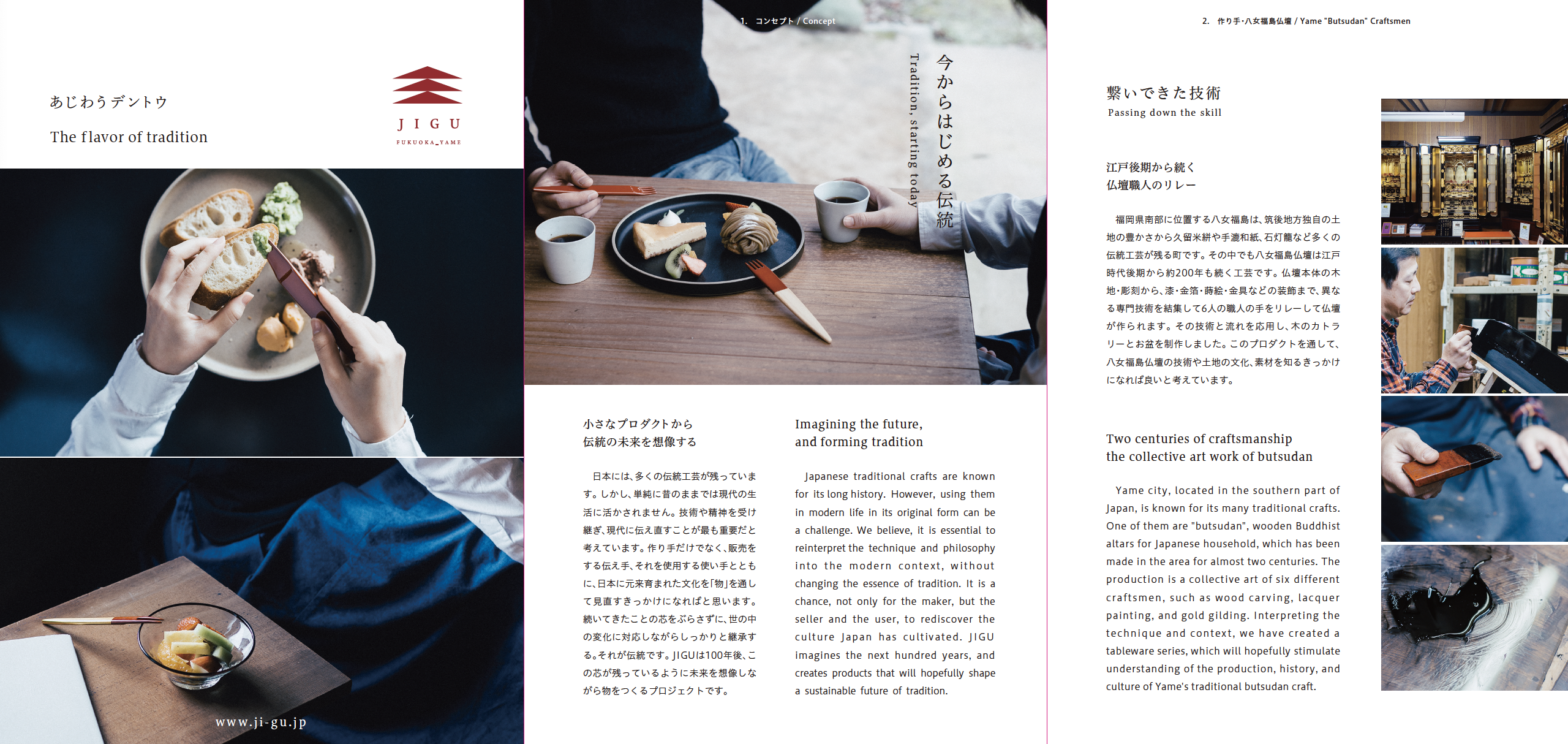 仏壇の製造プロセスには「木地・宮殿・彫刻・蒔絵・塗装・金具」と工程がわかれる。今回はその中で木工を扱う木地、漆や金箔を塗る塗装をベースにして、そのプロセスをカトラリー・お盆という形に落とし込みプロダクトを開発した。