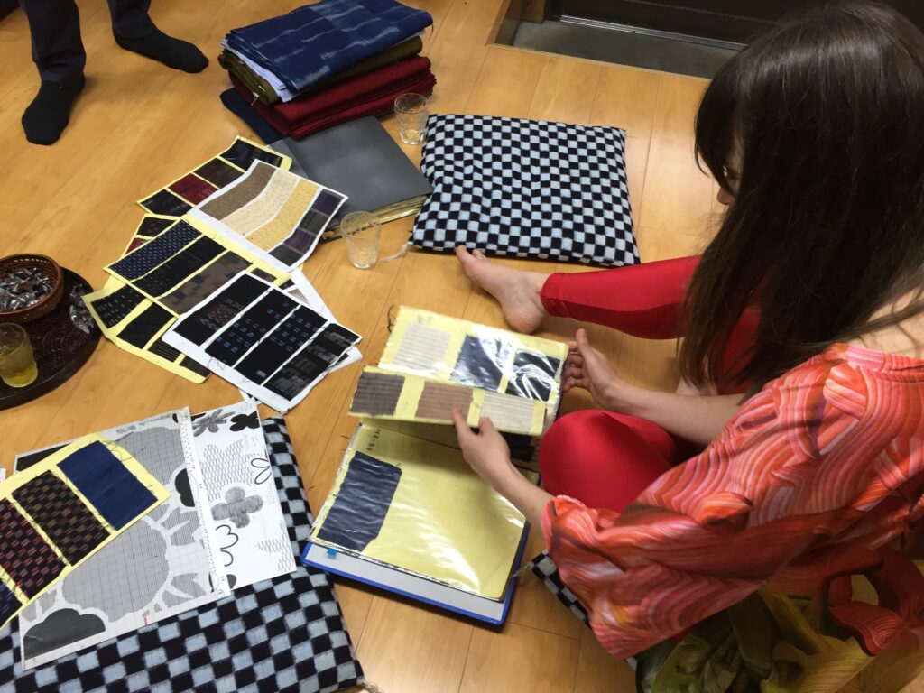 オランダ人のニルス・ヘイマンス、フランス人のエミリ・パラール 、日本人の篠田真紀子さん、この3人と共に福岡県南部の伝統工芸である久留米絣をテーマに取り組むことになった。僕らは、まず久留米絣の工程を見てもらった。しかし、全ての工程を見てもらうことは不可能なので、動画に撮影して日英の字幕をつけて、それをyoutubeに公開して振り返るような機能をつくった。この動画は今も役にたっている。(下部に動画のリンクを貼っている)